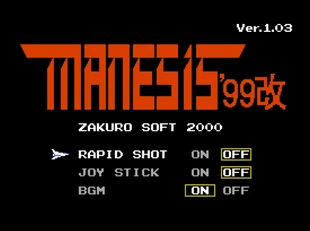Manesis 99 is very similar to GR3, in that they are both fangames made to appear like MSX games. However, Manesis is more like an MSX game, due to it having music which an MSX could generate, while GR3 does not. Manesis is very inspired by Gradius games that were recent at the time (e.g. Gradius Gaiden, Gradius IV) and is generally considered one of the better Gradius fan games.